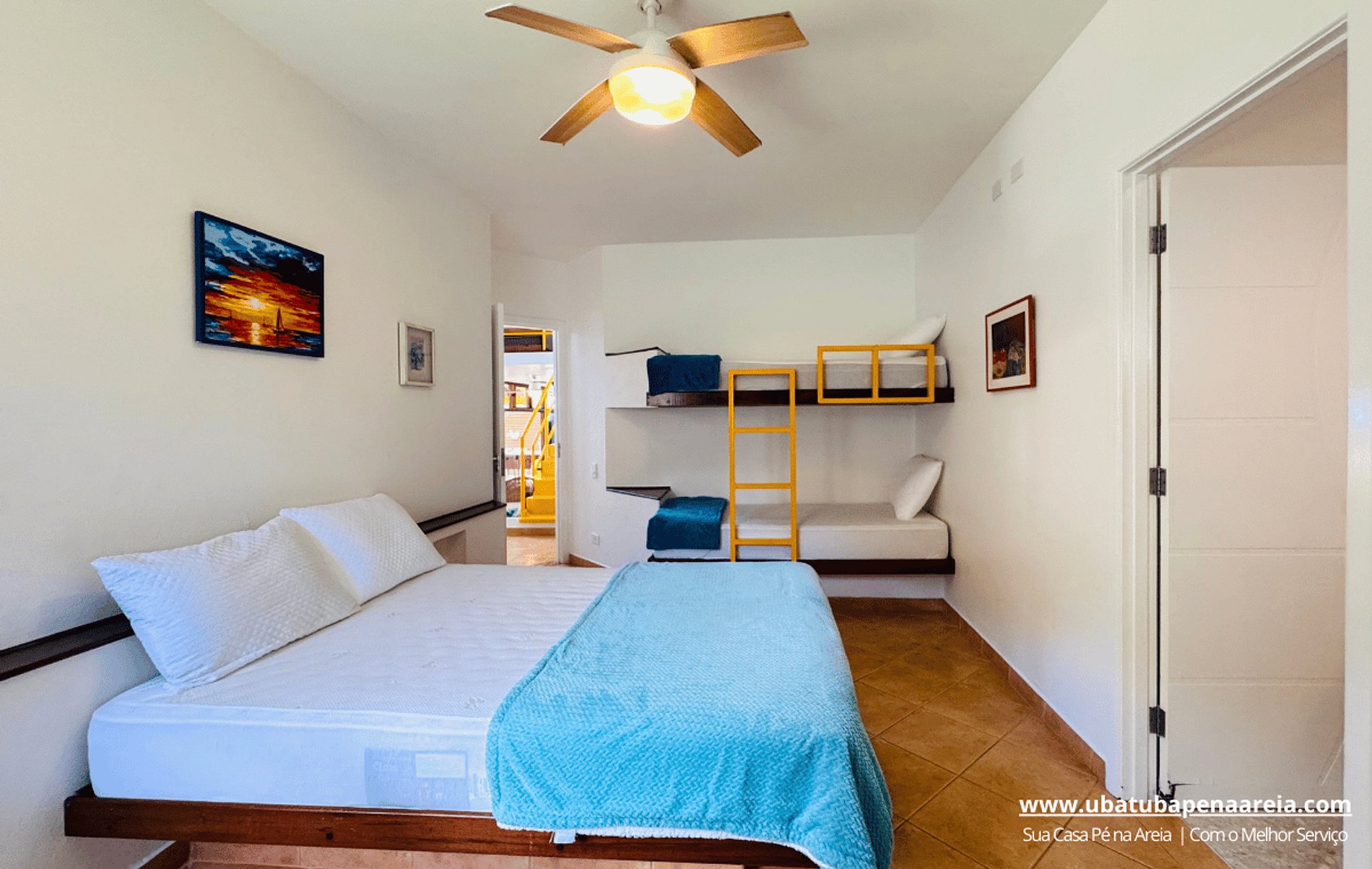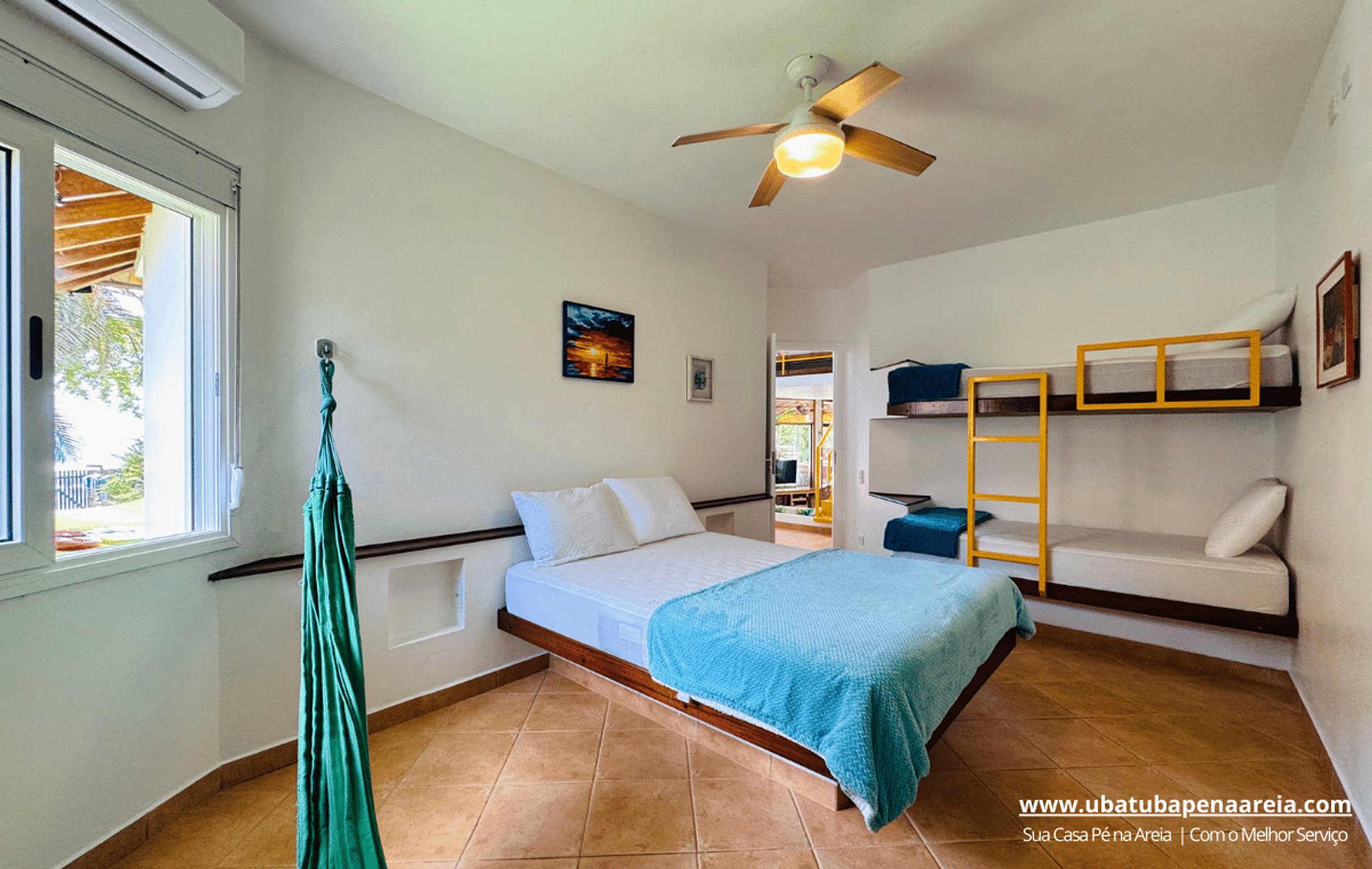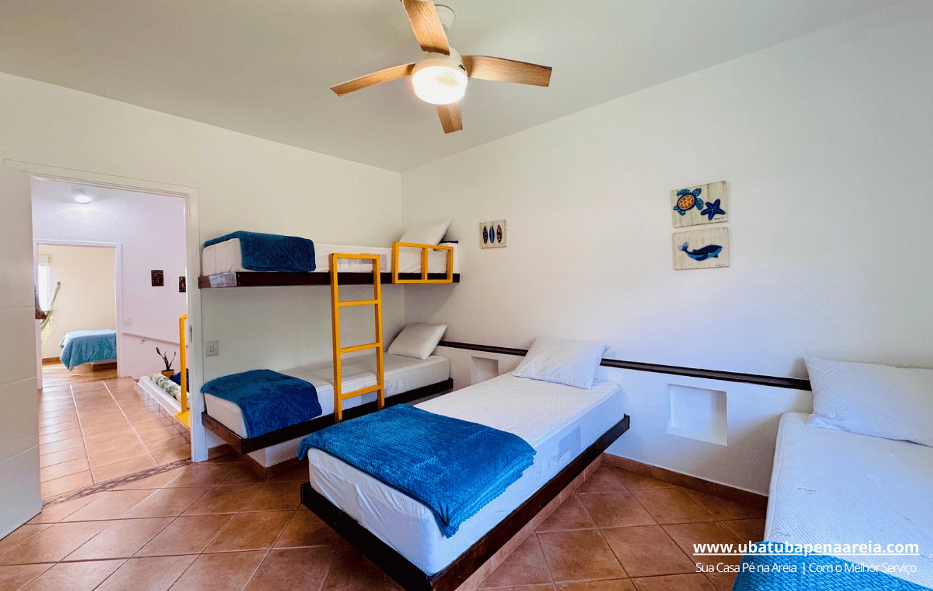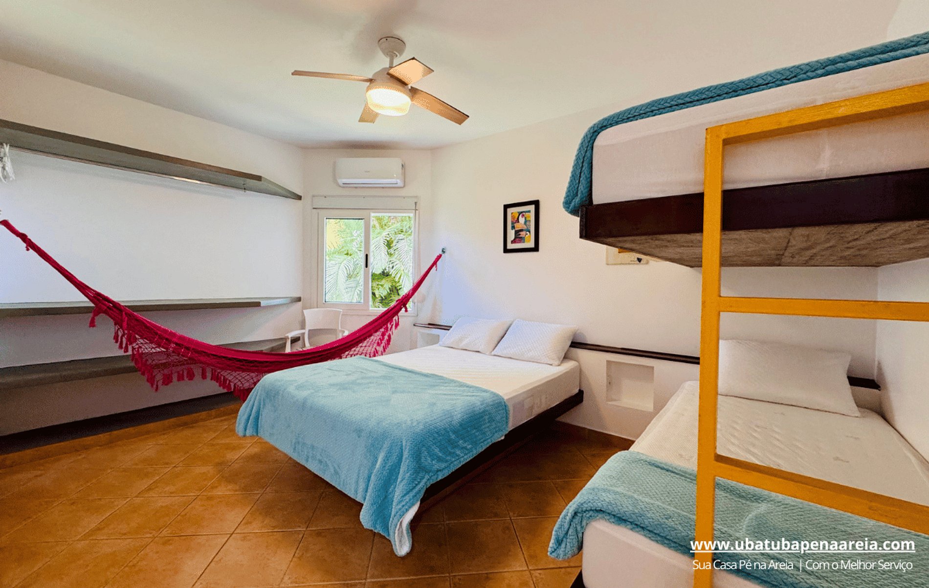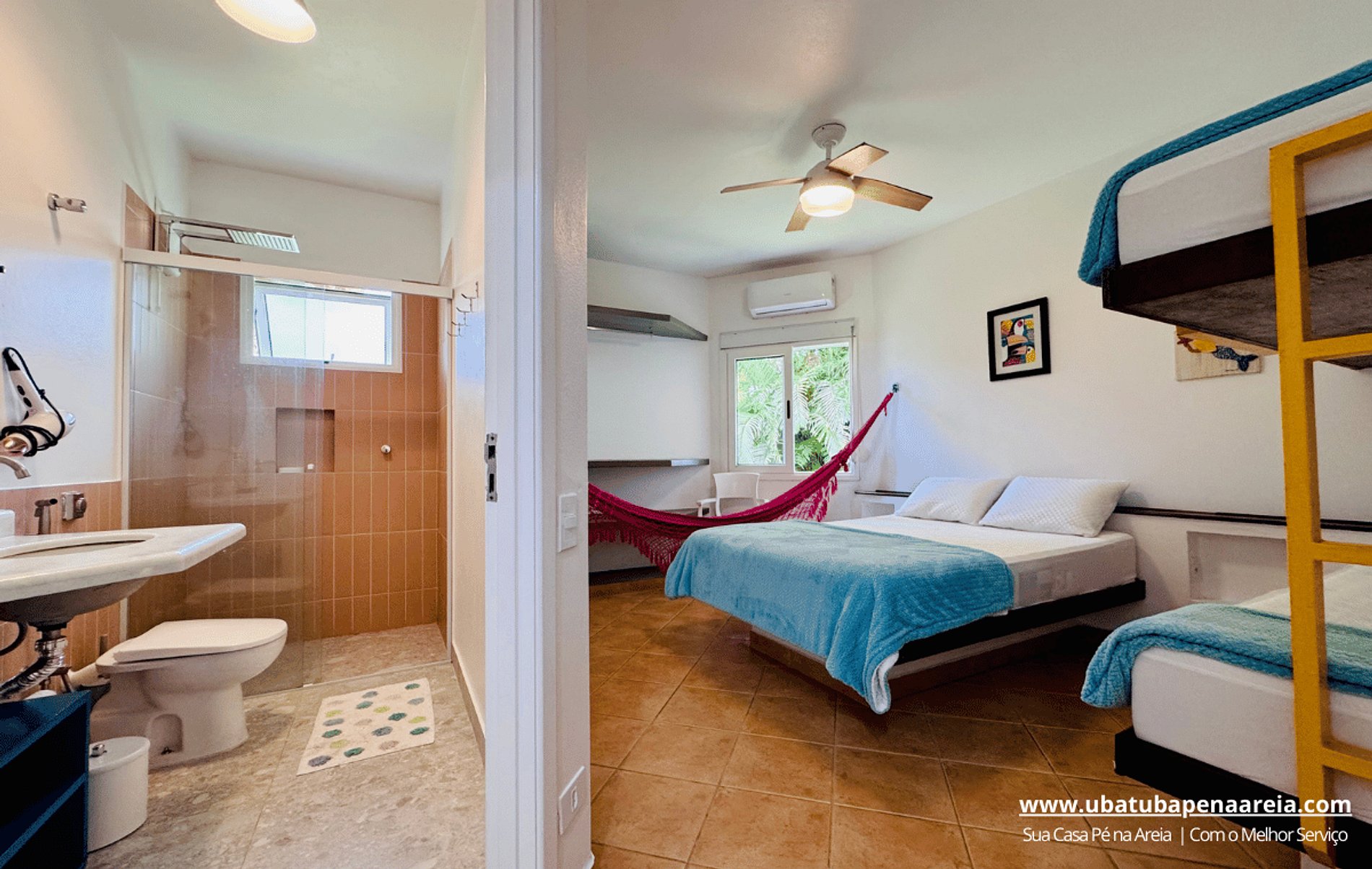 Reserva padrão inclui 4 suítes e 1 mezanino com banheiro completo, para até 18 pessoas (incl. crianças e bebês), todos com ar-condicionado