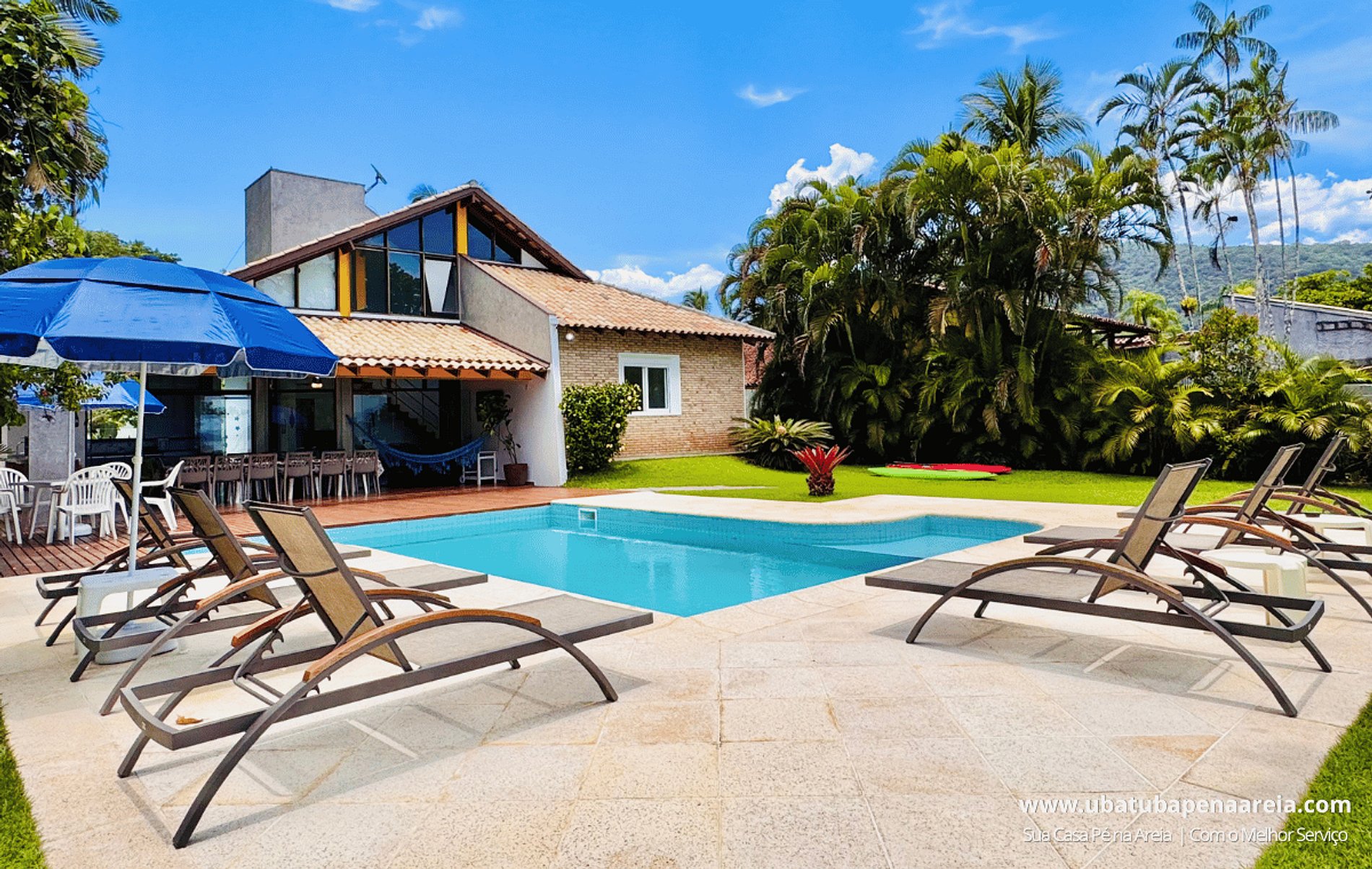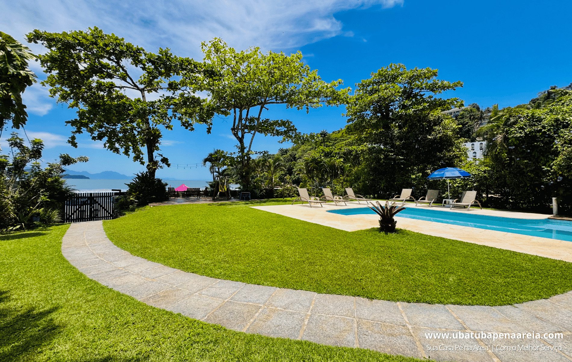 Localizada à beira-mar, oferece um ambiente amplo, ideal para crianças, com um terreno de 1.400 m2 e uma área construída de 300 m2.