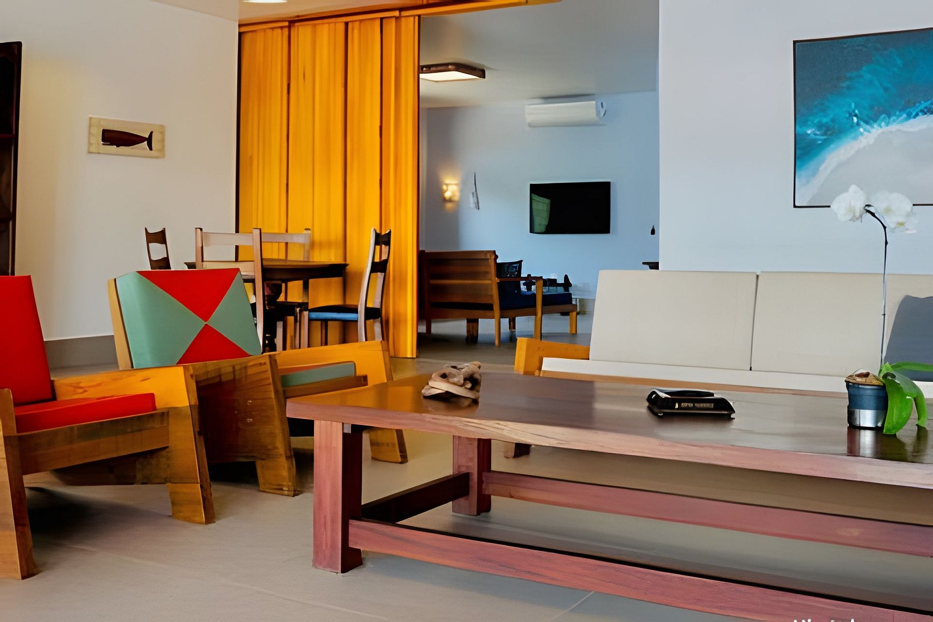 Localizada à beira-mar, oferece um ambiente totalmente acessível, ideal tanto para idosos quanto para crianças, com um terreno de 1.400 m2 e uma área construída de 550 m2.