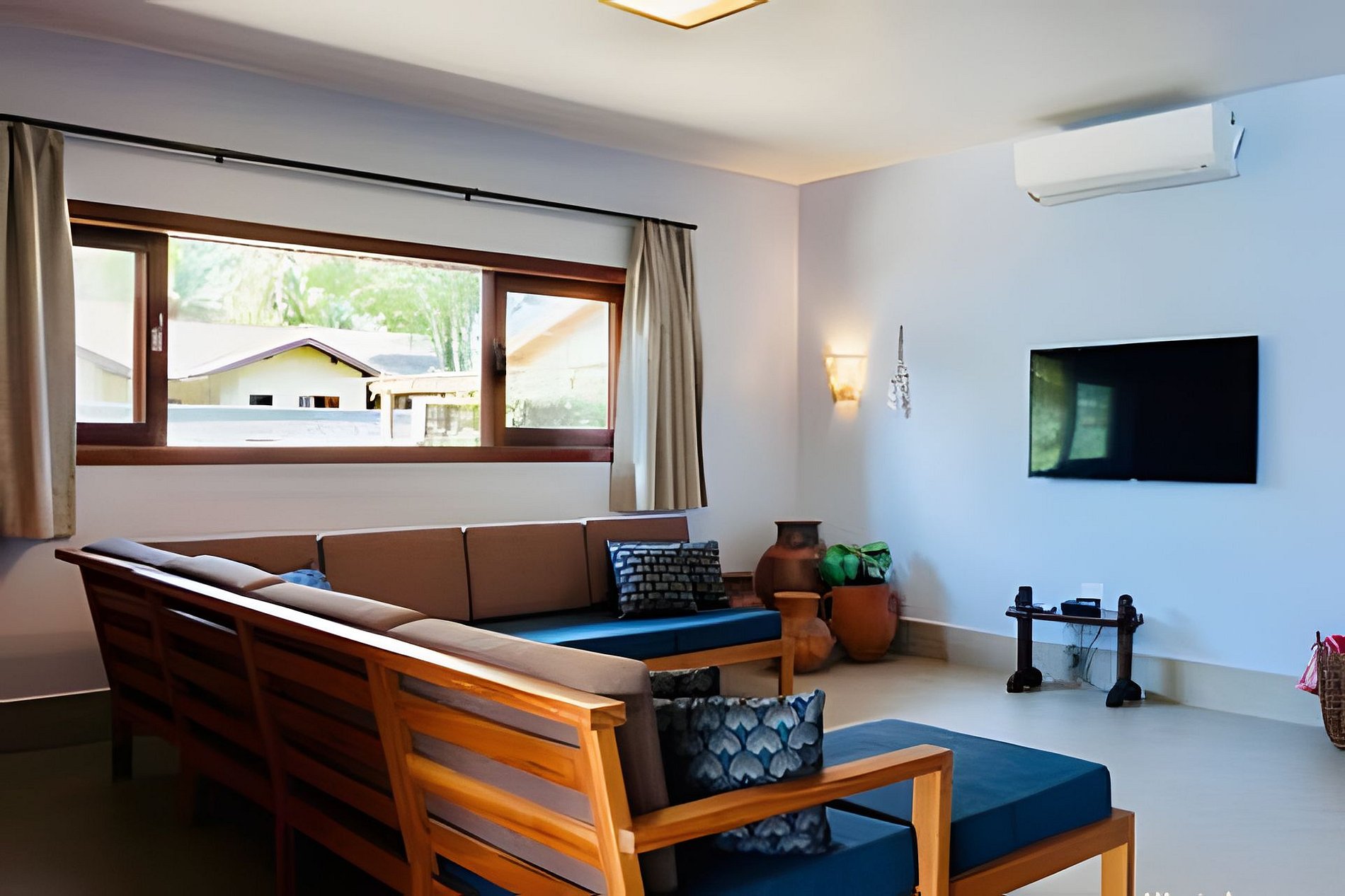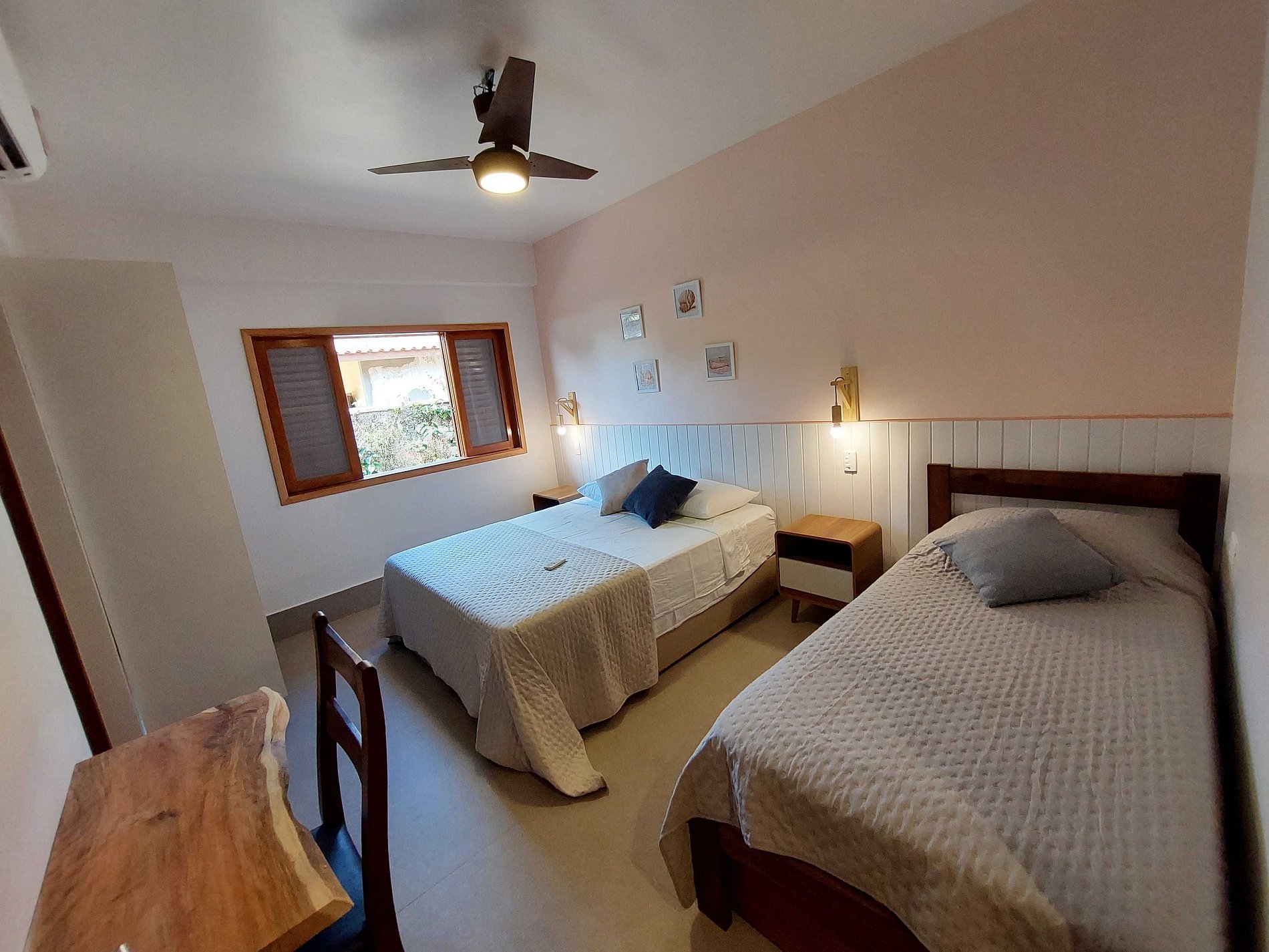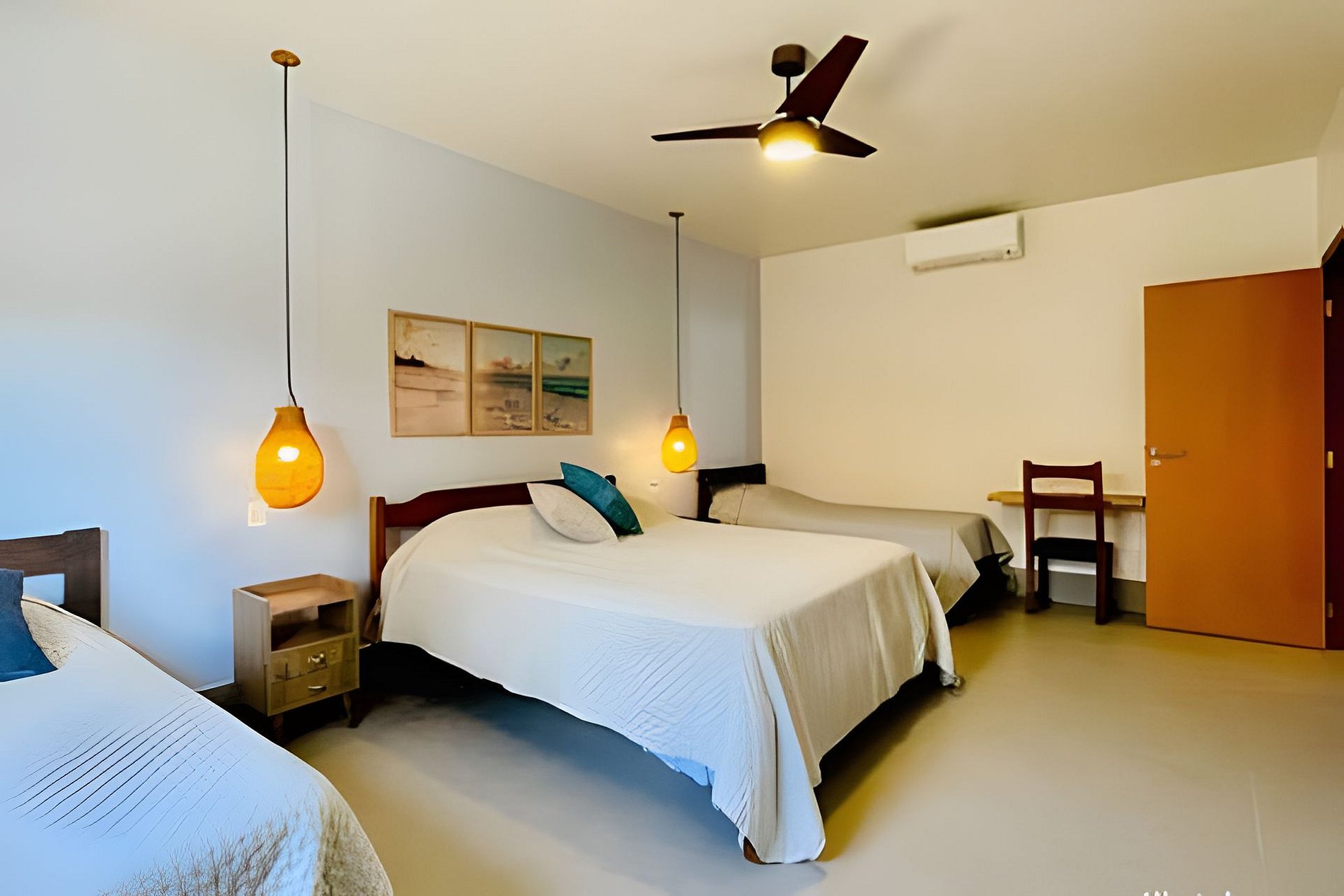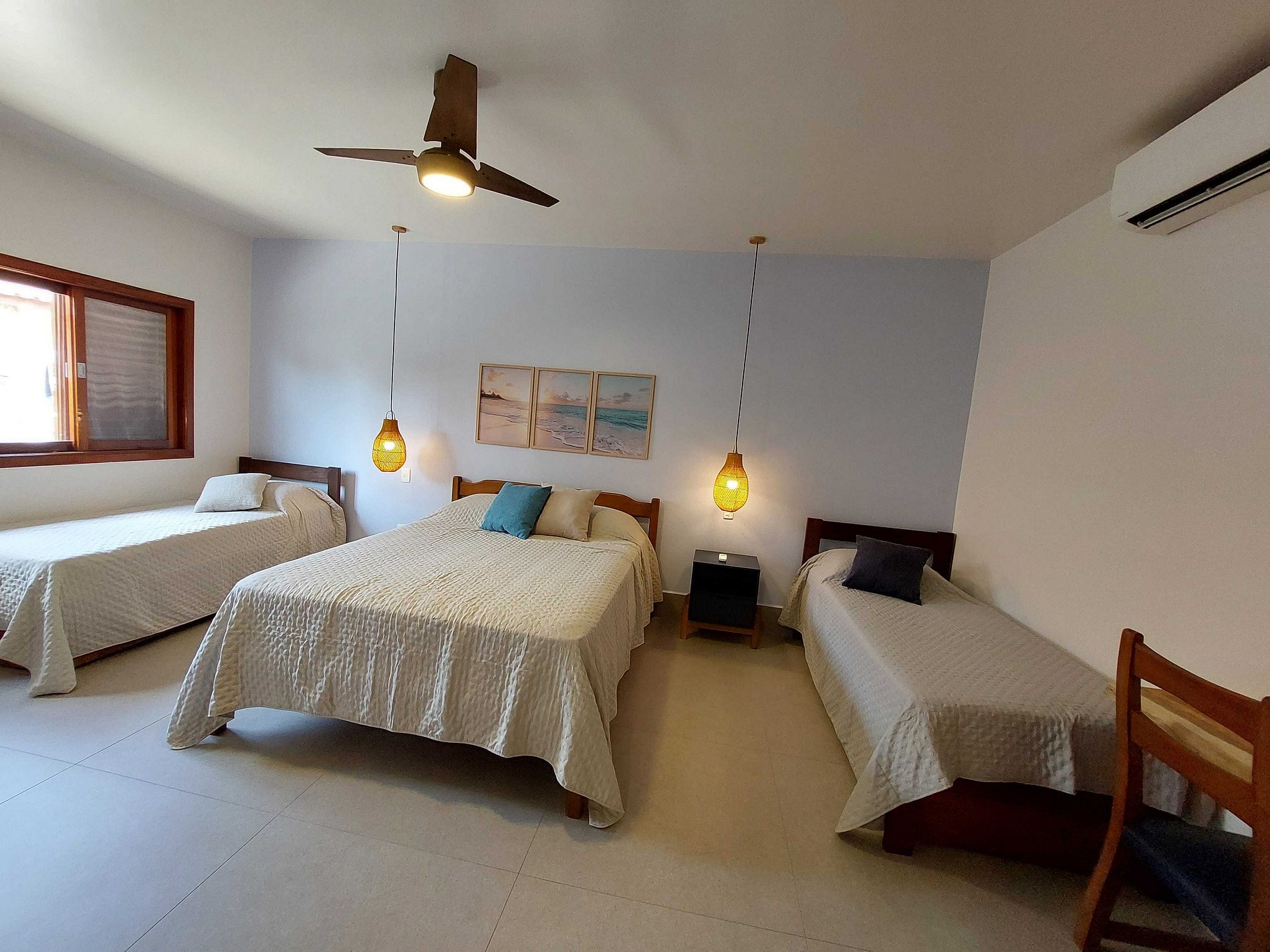 Em seu conjunto, a casa oferece até 7 suítes, compreendendo 8 camas de solteiro, 7 camas queen size, 1 sofá-cama e 2 bicamas, proporcionando conforto para até 24 hóspedes, incluindo crianças e bebês. Durante a locação, a casa é exclusivamente reservada para o seu grupo, garantindo privacidade, e as suítes não utilizadas permanecem fechadas durante a estadia.