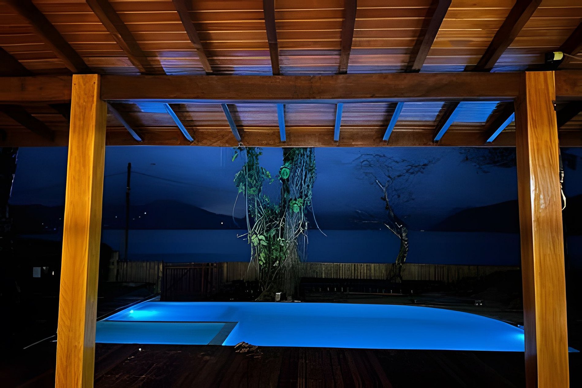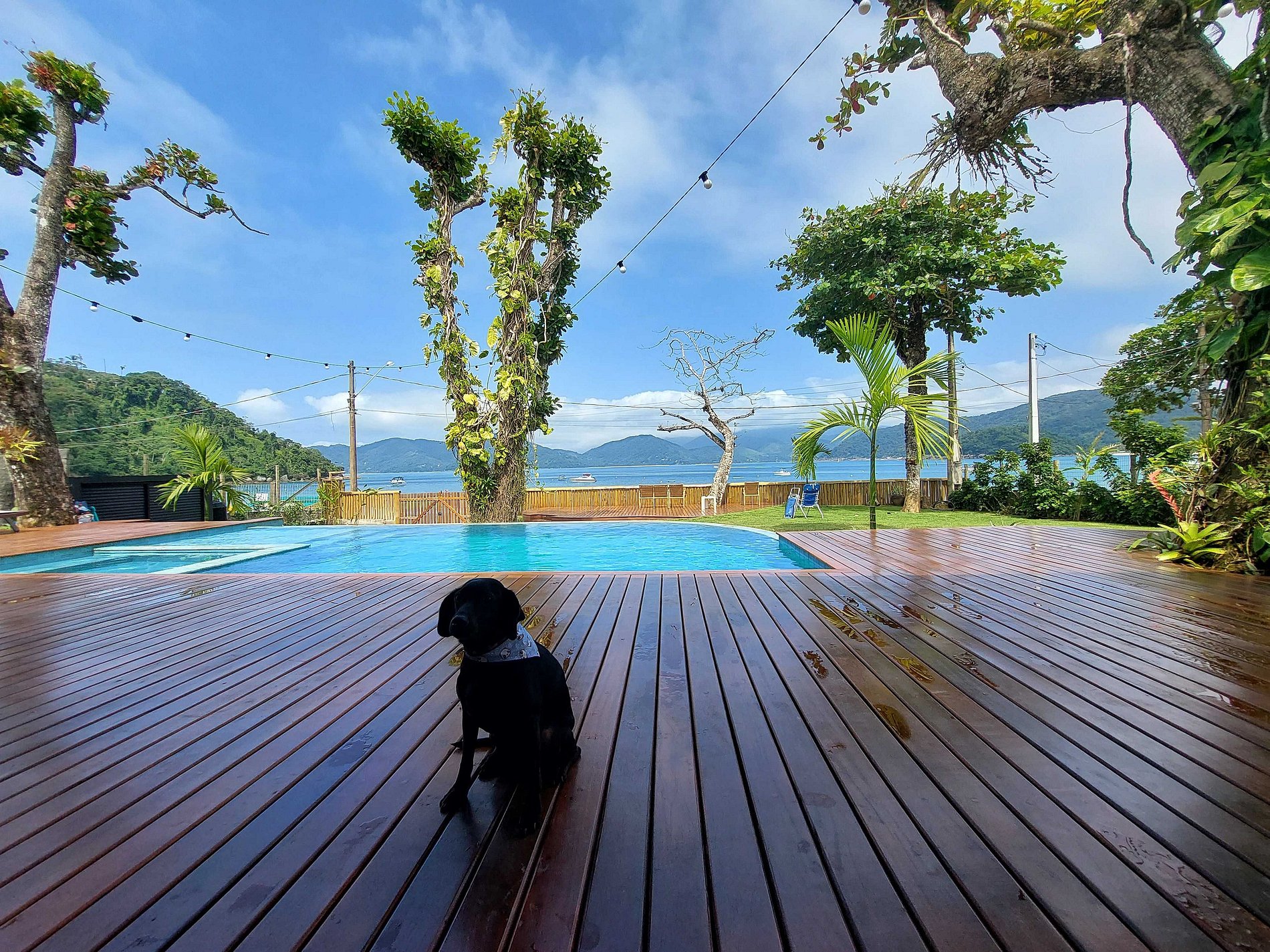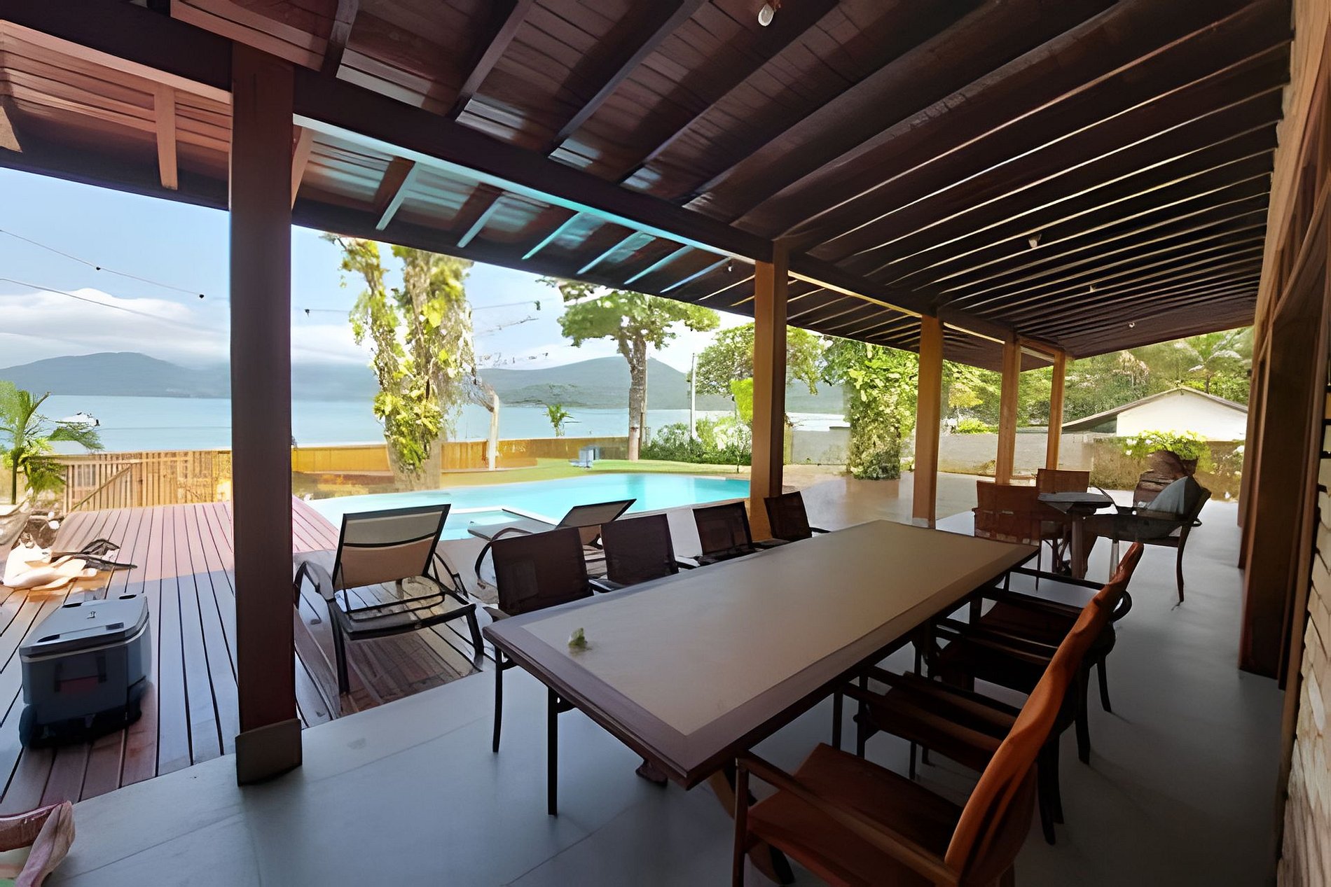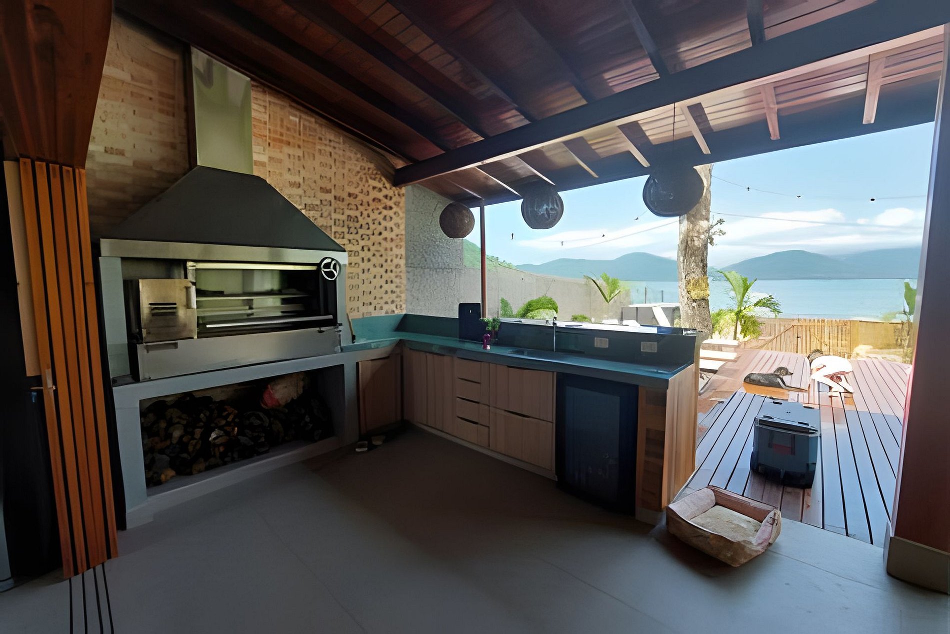 Localizada à beira-mar, oferece um ambiente ideal para crianças e adultos se divertirem na piscina, fazerem um churrasco, pizza ou aproveitarem o pôr-do-sol do deck de frente para o mar.